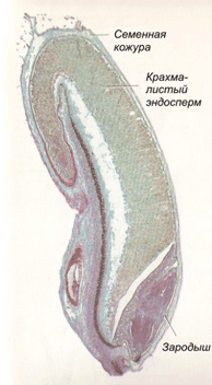 рисунке показано строение зерна. При сортовом помоле в муку идет только